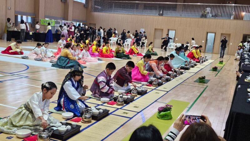 지난 11월8일 완산골 지역아동센터는 ‘설예원 전북지부’에서 주최하는 ‘2025 전국 청소년 차 문화전 및 차예절경연대회’에 참여하였다. 완산골 지역아동센터는 매년 이시기에 열리는 ‘차예절경연대회’에 아동들을 교육하여 출전시켜왔다. 이번 행사도 전주 곤지중학교 강당에서 개최되었으며 이번 행사는 다례, 도예, 매듭공예 체험까지 같이 진행되었다. 이번에 참여한 아동들은 기존에 참여하던 아동들 외에 올해 새롭게 다례교육을 접한 초등학교 1~2학년 아동 위주로 참여하였으며, 아직 어린 나이임에도 불구하고 아이들은 최선을 다해 정확한 방법으로 이번 대회에 참여하였다.