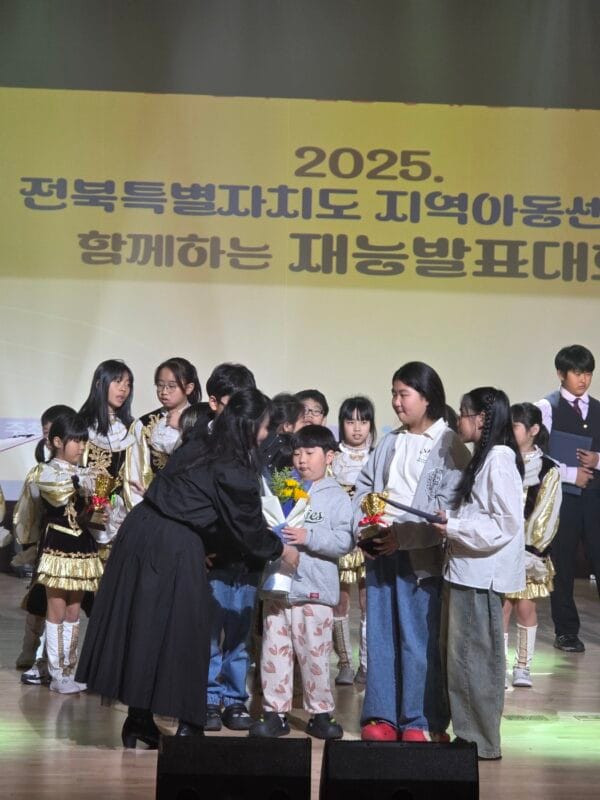 2025.11.22(토) ‘전북특별자치도 지역 아동 센터와 함께하는 재능 발표회’에서 완산골 지역 아동 센터가 수상의 쾌거를 이뤘다. 전북지역의 12개 아동센터가 참여한 이번행사는 전북도와 전국지역아동센터전북협의회 주최로 완산골 지역 아동 센터는 총 4명으로 이뤄진 ‘바이올린 앙상블’ 연주를 통해 수상하였다. 평소 꾸준히 준비해온 바이올린 수업이 성과를 다시한번 보는 귀중한 기회였다. 완산골 지역아동센터에서는 아이들의 재능 발전을 위해서 계속해서 투자를 아끼지 않을 것이다.