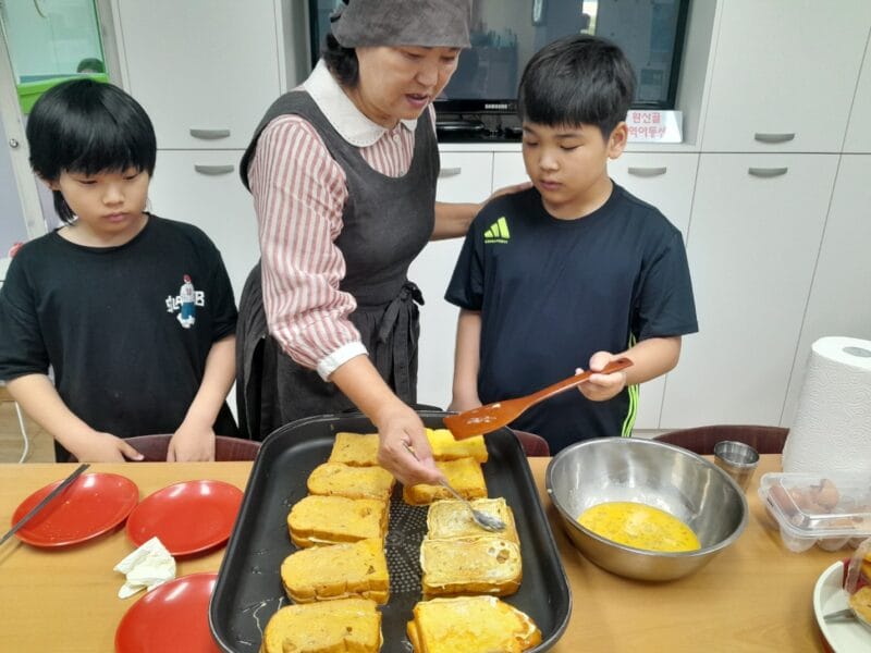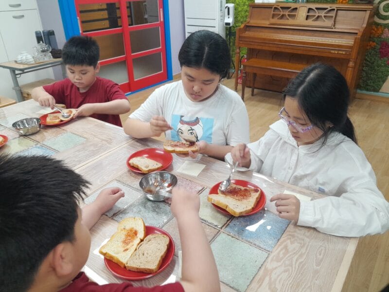 5월 요리심쿵 – 샌드위치 만들기글쓴이 완산골 주순옥 5월 21일, 요리심쿵 프로그램에서 아동들이 샌드위치를 간식으로 직접 만들어 먹었다.아동들이 샌드위치를 만드는 모습이다.아동들이 차와 함께 직접 만든 샌드위치를 먹었다.
